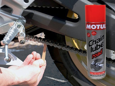 Tarkasta ketjujen kireys ja voitelu. Ketjun vapaaliike vaihtelee 20 - 50 mm:n välillä. Tarkista asia oman moposi käyttöohjekirjasta. Voitele ketjut vähintään 500 km välein.