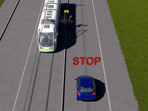 Har ett fordon eller en spårvagn stannat framför ett övergångsställe, får fordonet eller spårvagnen inte köras om utan att det omkörande fordonet stannat, om det inte finns en refug eller ett fritt körfält mellan det omkörande fordonet och det fordon eller den spårvagn som körs om.