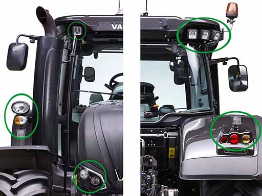 k) erikoiskuljetukseen käytettävässä moottorityökoneessa erikseen määrätyt valaisimet ja heijastimet.