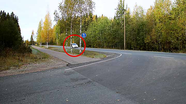 Titta till vänster för att försäkra dig om att ingen cyklist eller mopedist som du behöver väja för närmar sig från lättrafikleden.