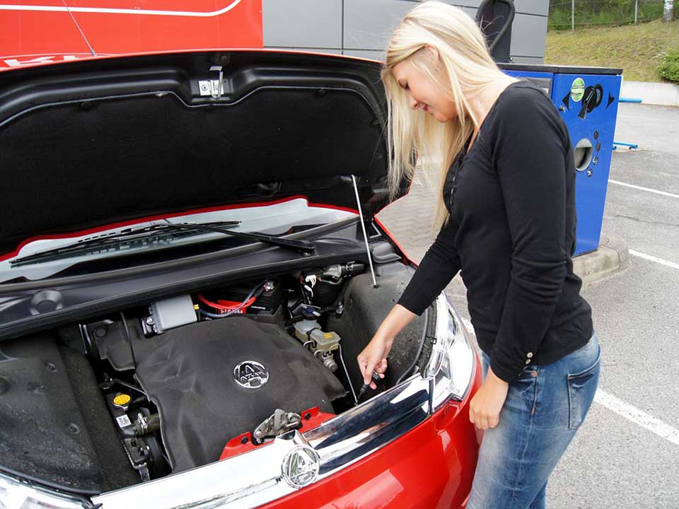 Tarkasta moottoriöljyn määrä, kun ajoneuvo on tasaisella ja moottori ei ole käynnissä. Lisää öljyä tarvittaessa.