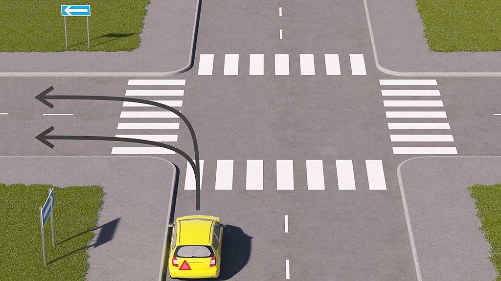 Vasemmalle kääntyvän on ryhmityttävä yksisuuntaisella ajoradalla sen vasempaan reunaan ja ohjattava niin, että ajoneuvo jättää yksisuuntaisen ajoradan vasemmalla reunalla.
