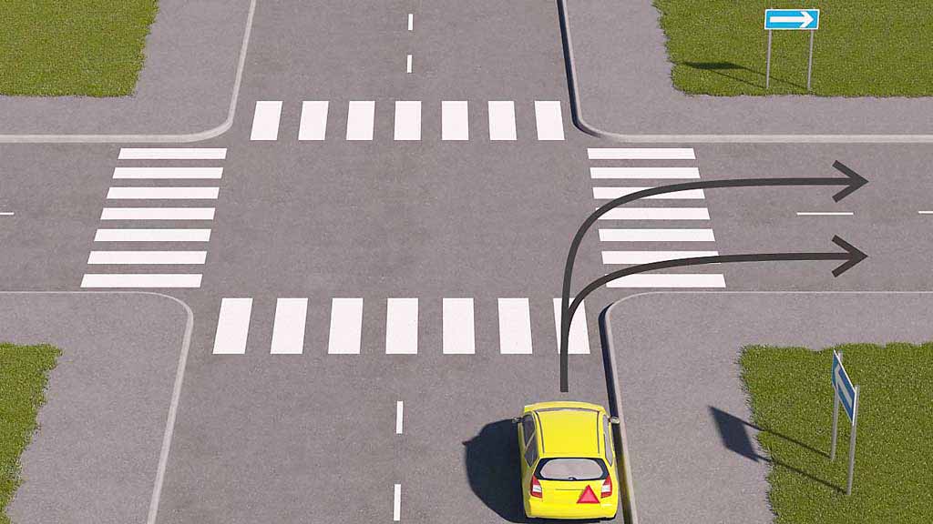 Jos risteävällä ajoradalla on ajosuunnassa kaksi tai useampia ajokaistoja, saa ajoneuvolla poistua risteyksestä sopivinta ajokaistaa käyttäen muu liikenne huomioon ottaen.