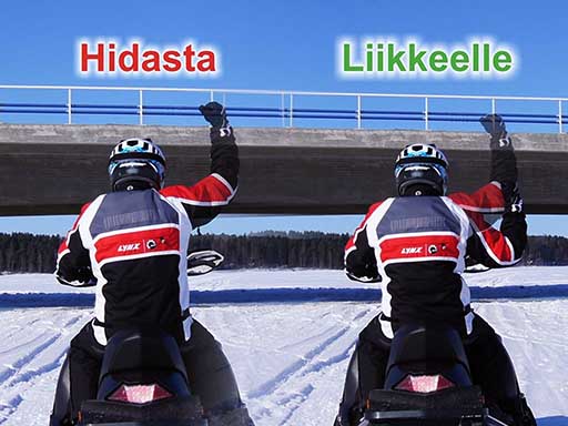 Ryhmän vetäjää tai muita ryhmäläisiä ei koskaan ohiteta. Älä koskaan ohita vetäjää tai muita safarin kelkkailijoita. Käytä käsimerkkejä ilmoittamaan vaaroista tai aikeesta vaihtaa suuntaa. On erittäin tärkeää pitää aina turvallinen välimatka jokaisen kelkan välillä.
